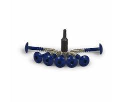 Schachtel mit 100 marineblauen Trespa-Schrauben, die für ein schönes Finish sorgen, ohne dass Unterlegscheiben verwendet werden müssen.
