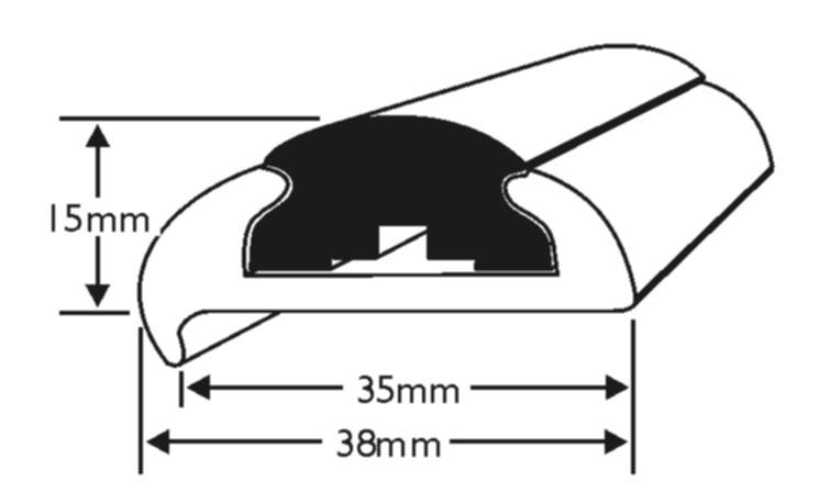 Ein Hart-PVC-Stoßfänger mit Lippe zur Montage auf einer 35-Millimeter-Basis.
