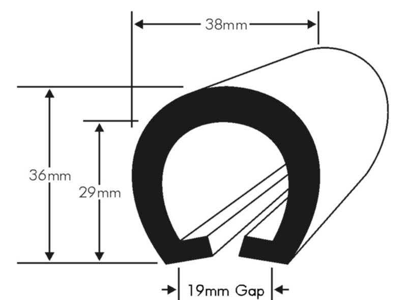 Ein PVC U-Klemmprofil für einen 19 Millimeter (halben) runden Flansch.