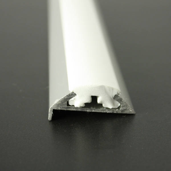 Das Profil besteht aus zwei Teilen, dem Aluminiumkörper, der auf den Rumpf geschraubt wird, und einer hier eingepressten PVC-Einlage. Dieser Einsatz ist in verschiedenen Farben erhältlich und muss separat bestellt werden.