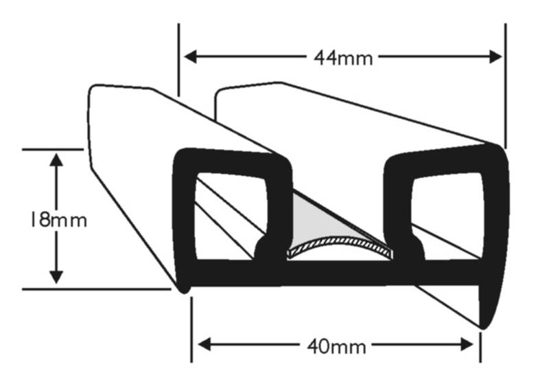 Ein hohles PVC-B-Profil mit kurzer Lippe, geeignet für eine flache Basis von 40 Millimetern.